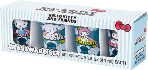 4 PIECE SET: Kawaii mini glass set comes with 4 glasses, 1.5 ounces each. Great to enjoy drinks with friends, or as a Sanrio Hello Kitty and Friends collector item.