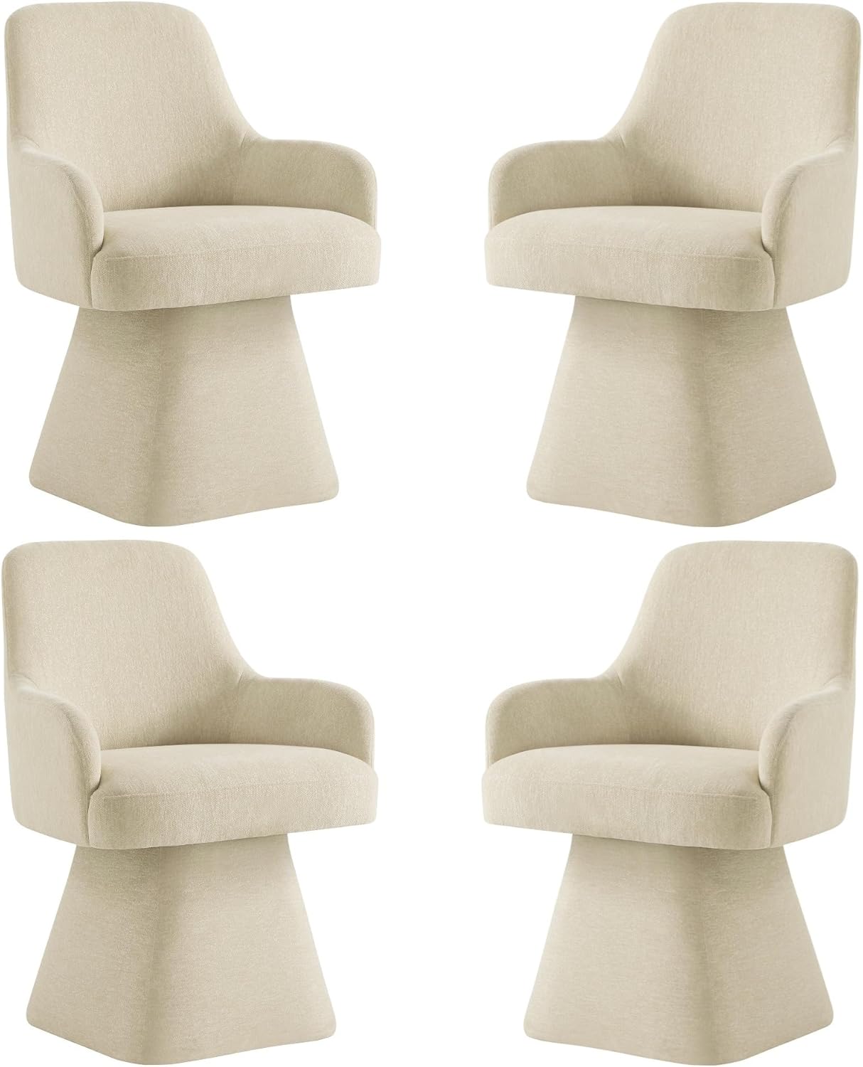 - 【360° SWIVEL COMFORT】These dining chairs feature a smooth swivel function with deep, plush seating – perfect for lively dinner conversations. The moderate-height armrests and chenille upholstery keep guests comfortable in dining rooms, living areas, or reading nooks.