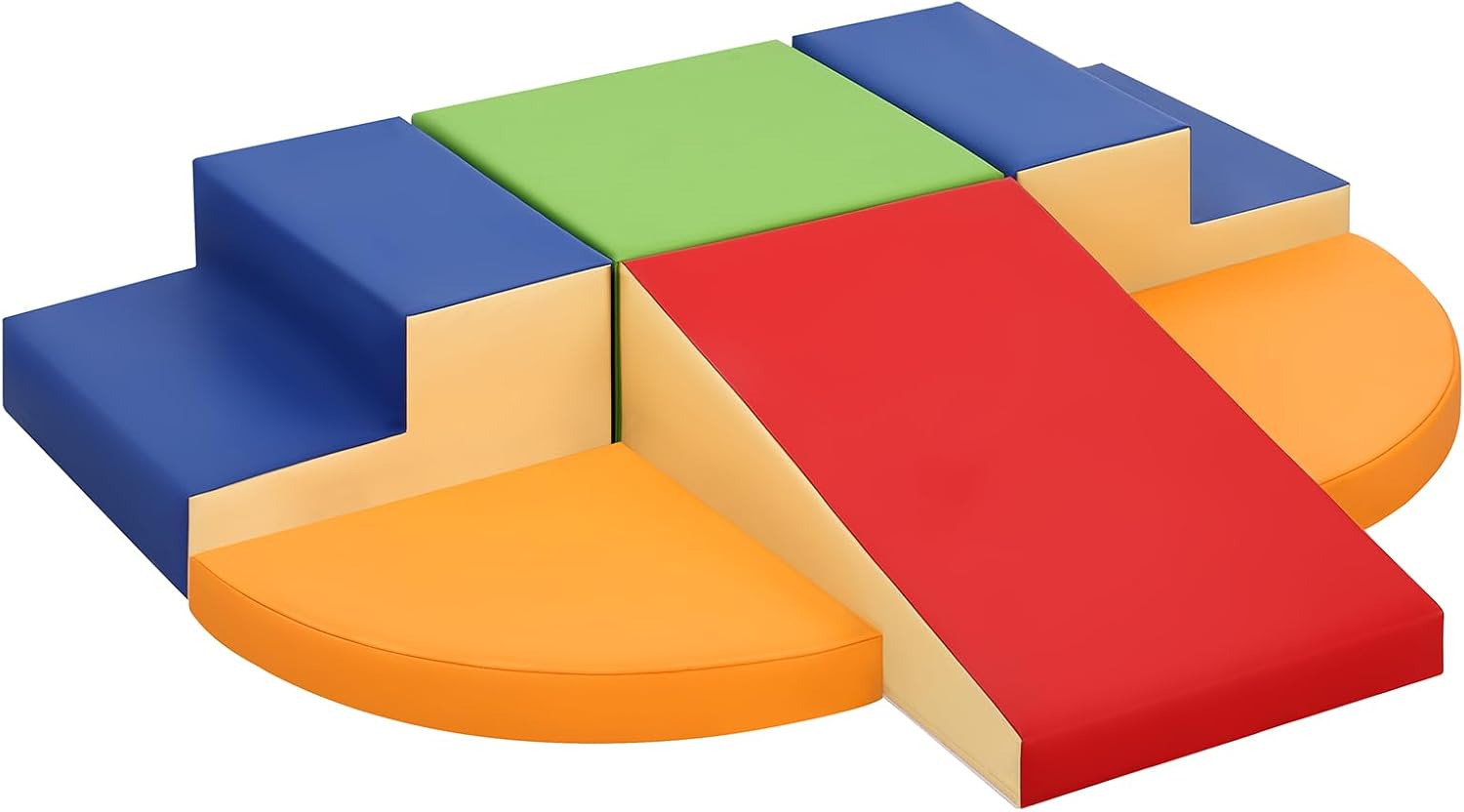 - 6-Piece Set: Baby climbing blocks consists of 2 blue stairs, 2 orange half-moons, 1 green square and 1 red slide. This soft play equipment stimulates your child’s imagination to create endless combinations of structures, allowing them to enjoy the fun of the toy as they climb up and down, stacking and swapping four different shapes
